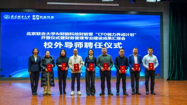 11月28日下午,北京联合大学与财能科技联合举办的第八届“财能营——cfo能力养成计划”开营仪式在北京联合大学综实b小剧场隆重举行。本次活动同期举办了财务管理专业建设成果汇报会,全面展示了校企双方在深化产教融合、共育数智化财经人才方面取得的丰硕成果。