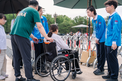 在纪念堂外围东侧服务,我成了特殊观众的守护者。仍记得搀扶行动不便的老人时,他们紧握我手的温度;劝导拍照家庭时,父母对孩子轻声讲述故事的画面;指引轮椅走专用通道,用对讲机联动北门助残岗的默契……原来被需要的重量,就是信仰落地的声音。
