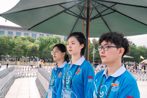 上岗首日,志愿服务团队交接仪式在纪念堂南广场举行,毛主席纪念堂管理局瞻仰接待处副处长吴青松,北京团市委大学中专工作部部长沈若萌、副部长王若冰,北京市志愿服务指导中心副主任刘赢,学校团委书记王子君出席,北京市志愿服务指导中心项华老师主持仪式。交接仪式上,与会领导分别为志愿者代表佩戴工作证、“为人民服务徽章”,并向志愿者团队授旗。我校志愿者代表带领全体志愿者宣誓。服务期间,北京联合大学志愿者团队怀揣热忱、坚守岗位,用汗水和微笑擦亮了联大志愿者这张“金名片”,以专业态度赢得毛主席纪念堂工作人员与广大瞻仰群众的一致认可。