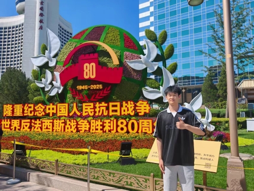 正如习近平总书记在阅兵讲话中所说:“中华民族伟大复兴势不可挡,人类和平与发展的崇高事业必将取得胜利。”这句宣言掠过耳畔,也落在心里。作为学生干部,我更深切地认识到,今天的琳琅满目并非终点,而是新的起跑线。我将把阅兵精神带回校园,用支部微团课讲好“首次”背后的科技自立自强故事,用志愿服务把“艰苦奋斗”的接力棒传到更多同学手中,让青春与家国同频,让理想在强国建设、民族复兴的新征程上绽放更耀眼的光芒。