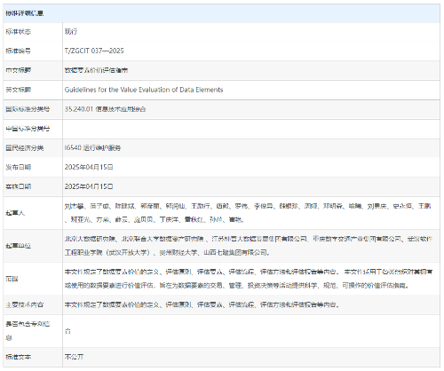 我校数据资产研究院深度参与数据要素价值评估标准建设。4月18日,由中关村智能科技发展促进会发布的团体标准《数据要素价值评估指南》(t/zgcit 037-2025)
