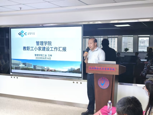 万坤做了“同心同德 踔厉奋发 携手共建有温度的创新型管院”的建家工作汇报。他从学院的建家思路开始,从六个方面做了工作汇报:学院党政大力支持工会工作;认真落实民主管理制度;积极维护教职工合法权益;大力加强教职工队伍建设;完善工会组织自身建设;不断加强管院工会特色工作建设。
